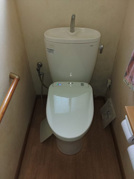 便器とタンクを繋ぐ箇所の部品交換、ウォシュレット交換とトイレ自体の交換を提案し、お客様より15年程使っているので新しい物に交換して欲しいとのことで、トイレ交換をすることとなりました。