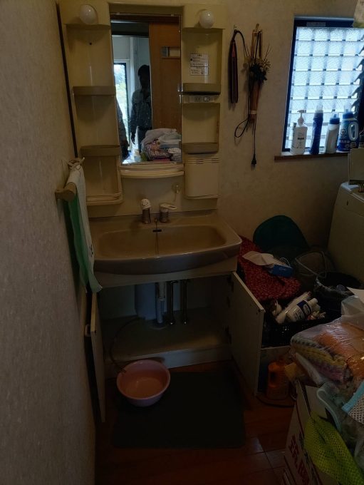 お客様へご説明し、使用年数も25年くらい経っているとの事で、複数ご提案した中から選んでいただき、即日で新しい洗面化粧台への交換をさせていただきました。