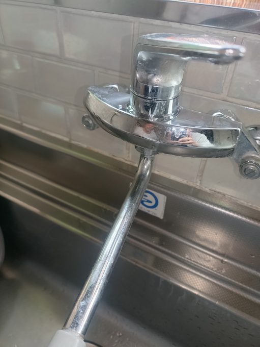 点検し確認するとカートリッジ故障による水漏れでした。MYMという会社はもう無いため、蛇口交換作業をさせていただきました。