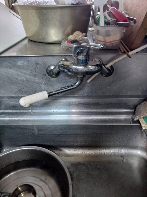 市販品の蛇口で品番がなく、部品の特定が難しく、修理の場合、部品注文後の作業となり時間がかかることをお伝えすると、「このままだと不便だし早く対応してほしい。」とのことでしたので、当日対応できる蛇口本体の交換をご提案させていただき、今回は蛇口本体の交換をさせていただきました。