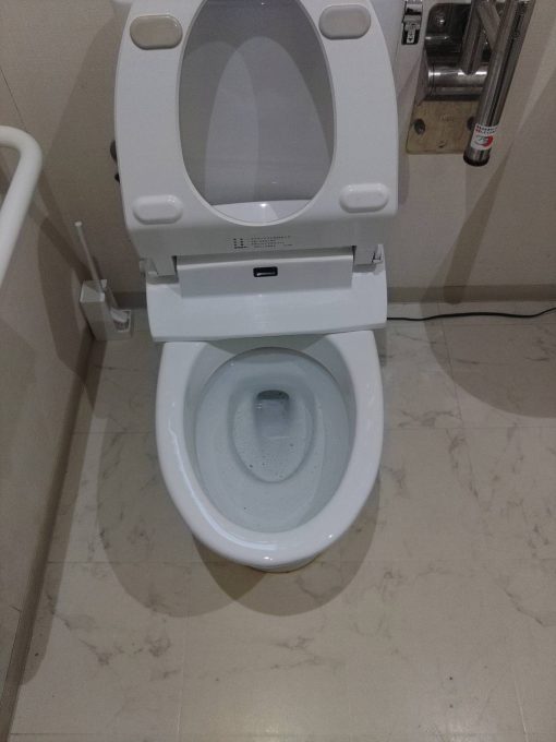 お客様にも確認してもらいオムツを取り除きますと通常通り流れるようになりました。
