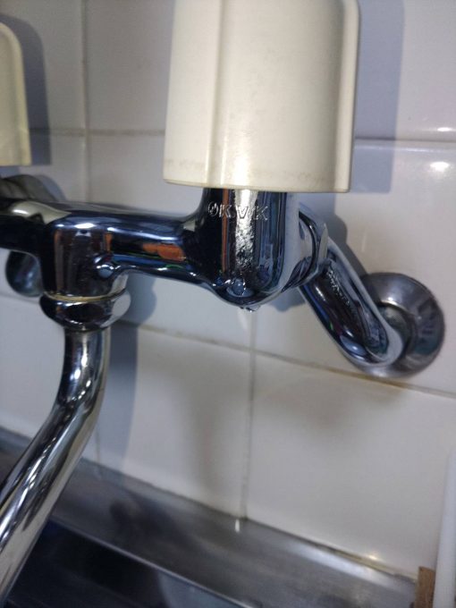 蛇口の先端からポタッポタッと漏れて蛇口を捻るとハンドル部分からもツーポタポタと複数箇所から漏れていました。